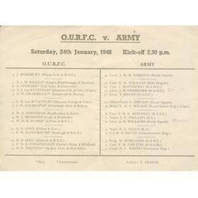 Official programme for the Varsity rugby match played on December 7 1948. Oxford won 14-8. Covers rubbed and central page loose from rusty staples. Good.